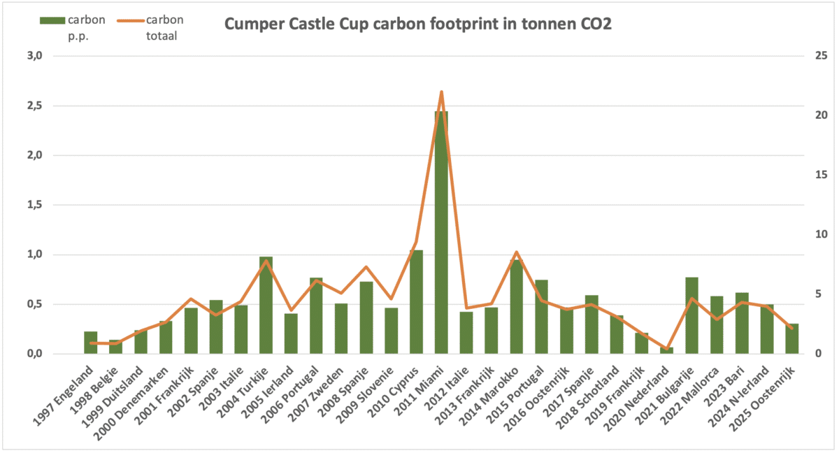De Cumper Castle Cup CO2 belasting is berekend m.b.v. calculaties van https://co2.myclimate.org/.